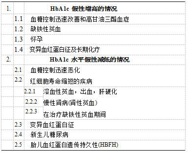 ★局限性:有研究发现90-120天的血糖水平对HbA1c的影响只有10%,HbA1c的测定在评估特定时间范围的血糖水平准确度值得推敲,同时,对调整控制血糖方案后的患者评估存在“反射弧过长”。它不能及时反映患者血糖波动的特征及低血糖风险,而且其数值还会受到血红蛋白半衰期的影响,因此糖化血红蛋白不适合用于评估特定疾病患者的血糖状态,包括血红蛋白病和红细胞异常疾病。同时,许多类型的贫血也会影响HbA1c浓度水平(见下表2)。