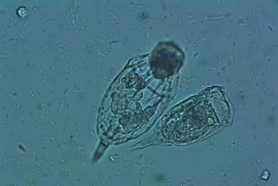 解析:轮虫并不是人体常见的寄生虫,系一种多细胞动物,属于原腔动物门 (AsChelminthes) 中一个纲,因为头部前面有一个具有纤毛的头冠,在幼稚态轮虫头冠形成类似两个“车轮”,故称轮虫,为水生生物,在尿液中检出,考虑外界水源污染所致。